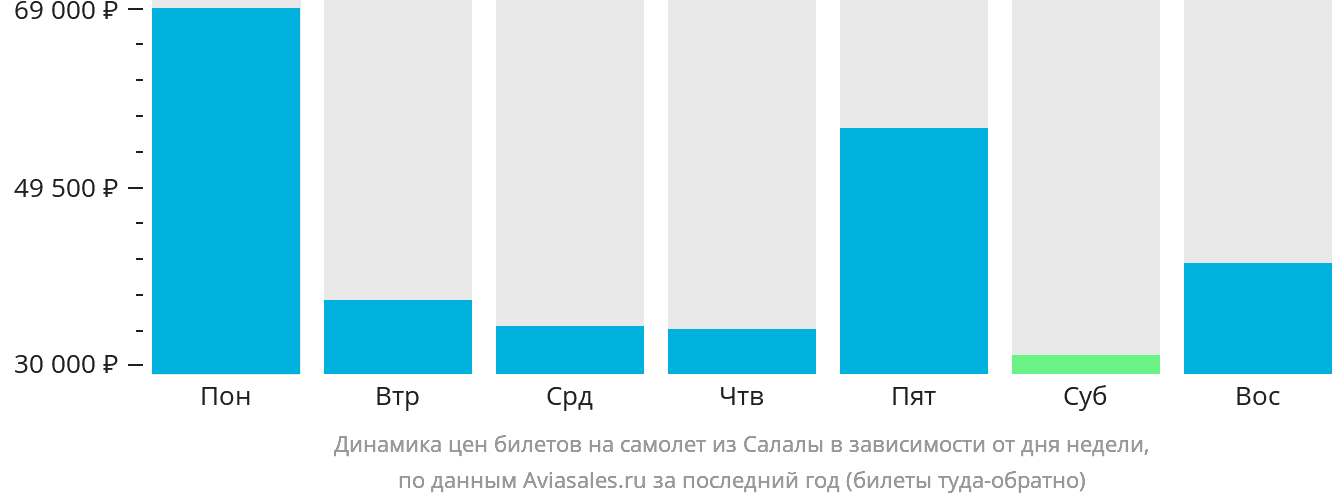 В зависимости от количества дней, оставшихся до вылета, цена билета на самолёт из Салалы может измениться более чем на 254%.