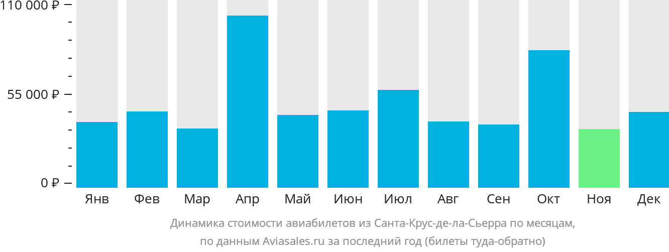 Чаще всего билеты из Санта-Крус-де-ла-Сьерра берут на январь, февраль и март. Низким сезоном для покупки билетов считается август, сентябрь и октябрь.