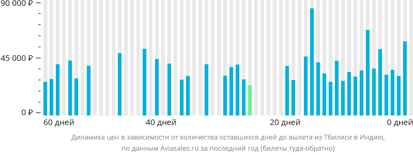 Необходимо учесть, что в зависимости от количества дней, оставшихся до вылета, цена билета на самолёт Тбилиси – Индия может измениться более чем в два раза.