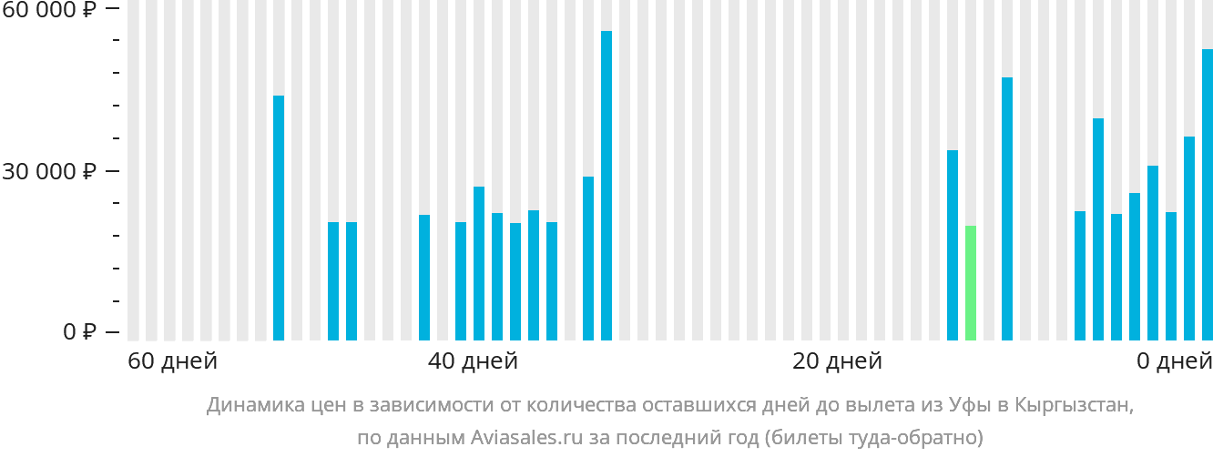 Необходимо учесть, что в зависимости от количества дней, оставшихся до вылета, цена билета на самолёт Уфа – Кыргызстан может измениться более чем в два раза.