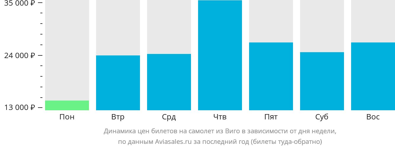 В зависимости от количества дней, оставшихся до вылета, цена билета на самолёт из Виго может измениться более чем на 238%.