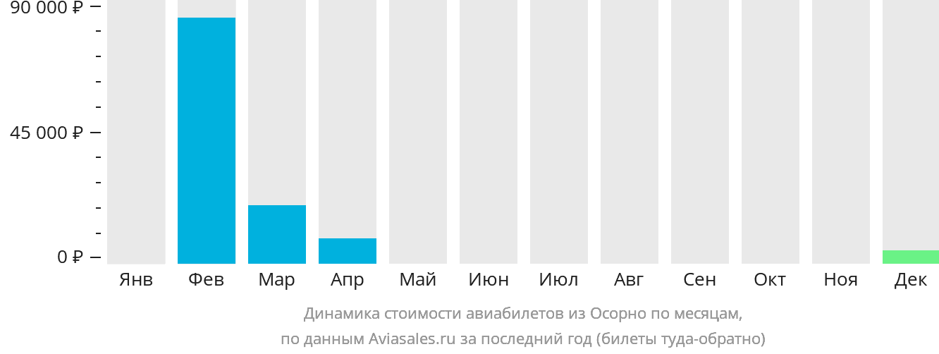 Чаще всего билеты из Осорно берут на март, июнь и июль. Низким сезоном для покупки билетов считается сентябрь, октябрь и декабрь.
