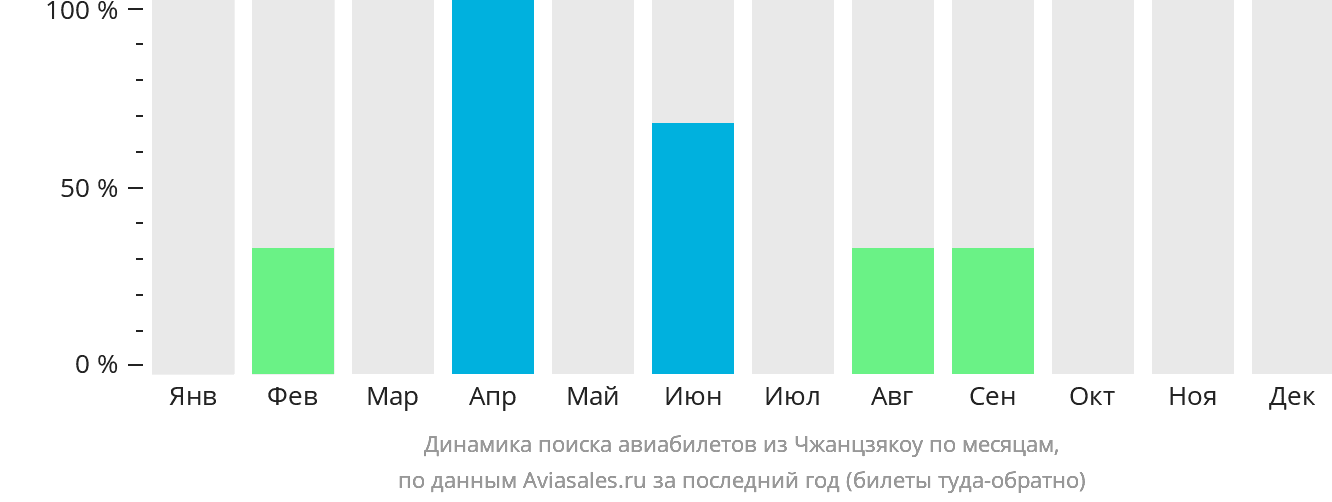 Чаще всего билеты из Чжанцзякоу берут на . Низким сезоном для покупки билетов считается октябрь, ноябрь и декабрь.