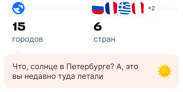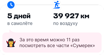 Постройте свою карту путешествий и узнайте, сколько вы налетали за год или за всё время. В приложении Авиасейлс доступна полная статистика перелётов: километры, время в пути и карта мест, где вы были.